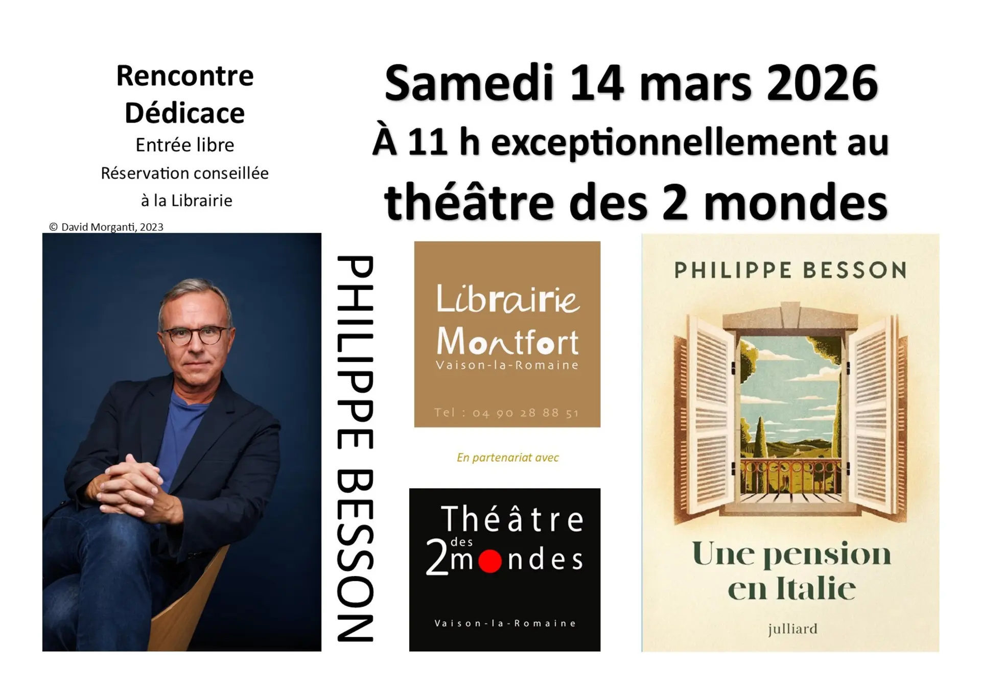 Die Buchhandlung Montfort freut sich, in Zusammenarbeit mit dem Théâtre des 2 Mondes Philippe Besson für ein Treffen und eine Lesung zu seinem Roman "Une pension en Italie" begrüßen zu dürfen. Eine Reservierung wird empfohlen.
