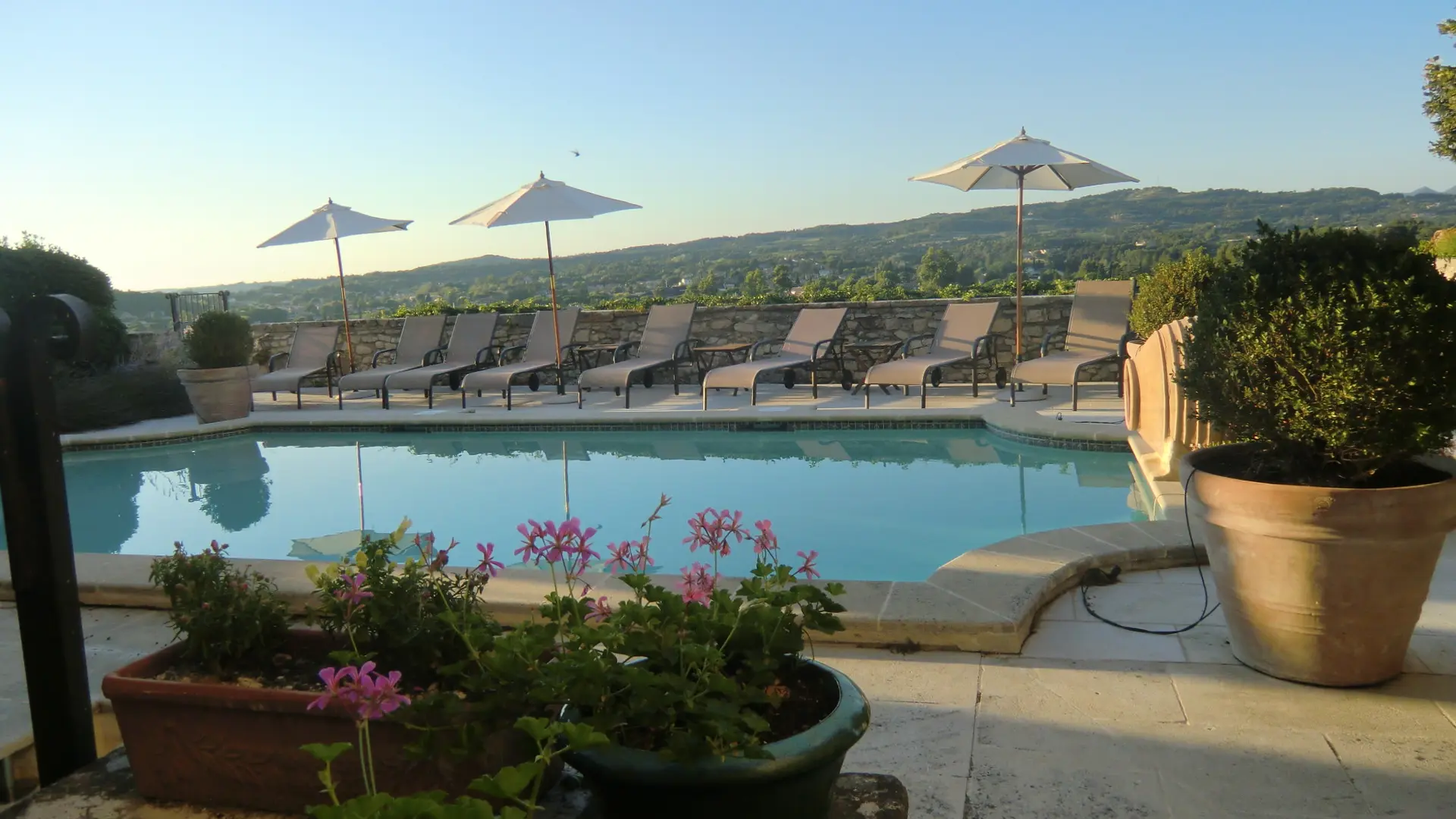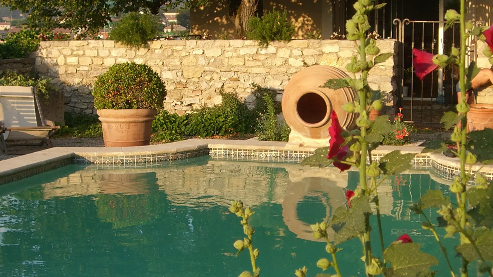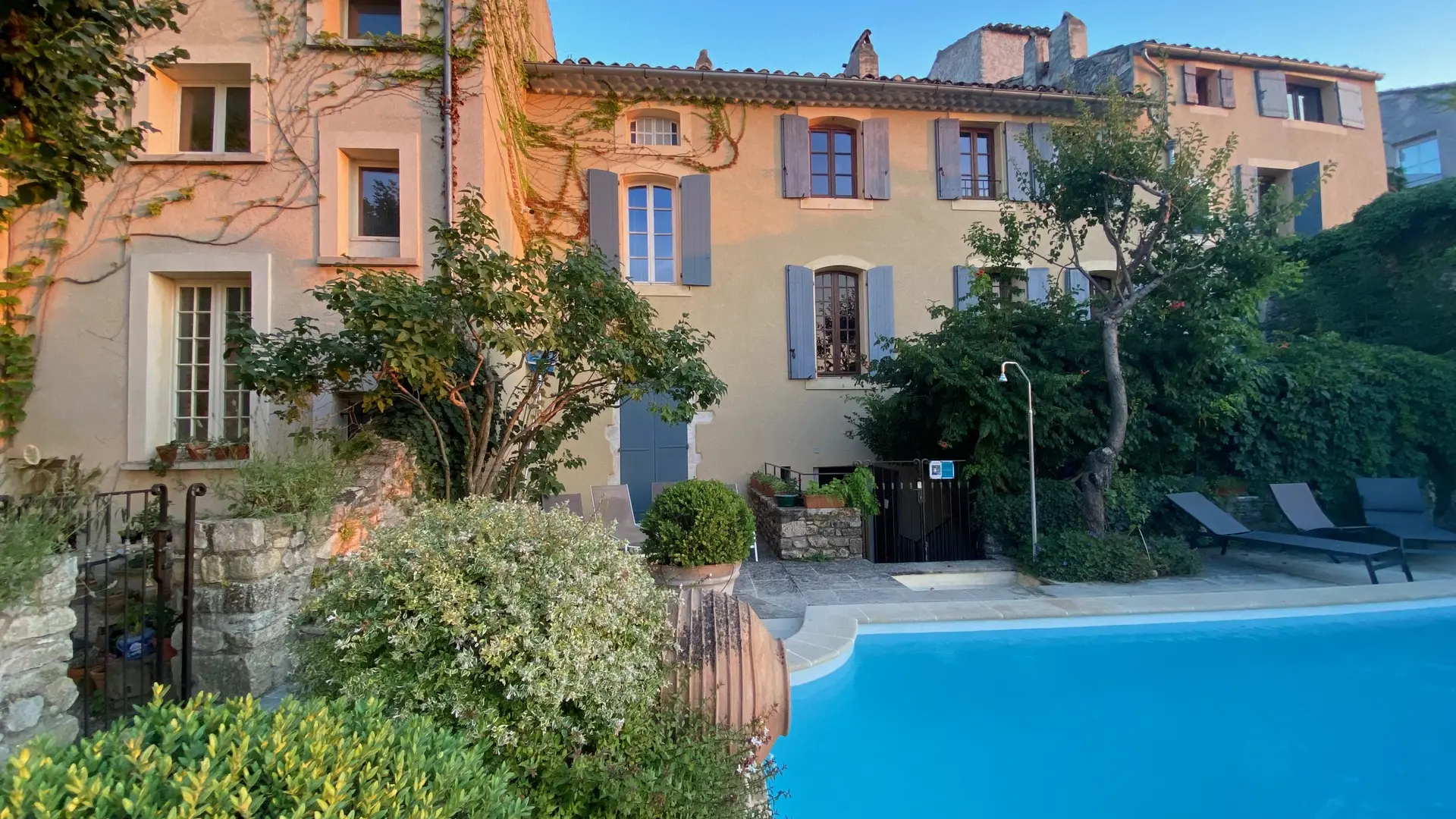 Den Gästen steht ein privater Pool auf einer Terrasse mit Blick auf die Ouvèze und die Neustadt zur Verfügung.