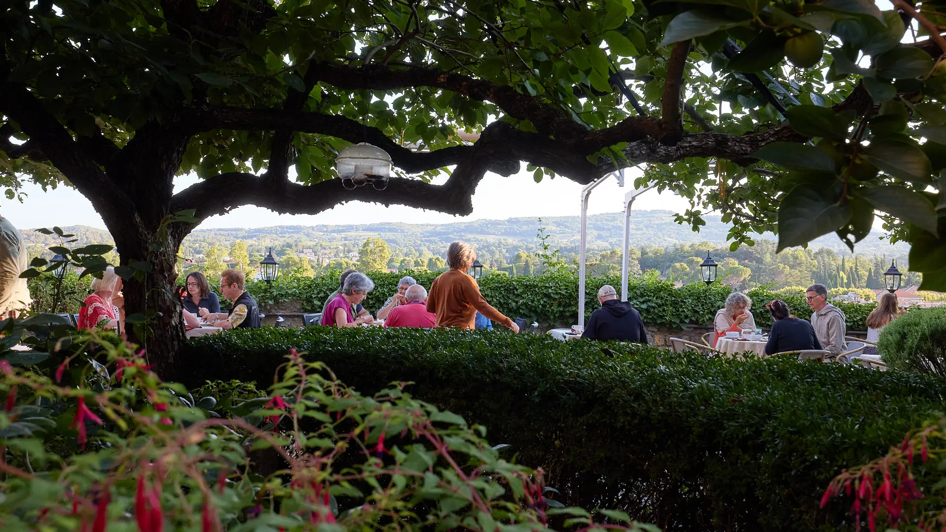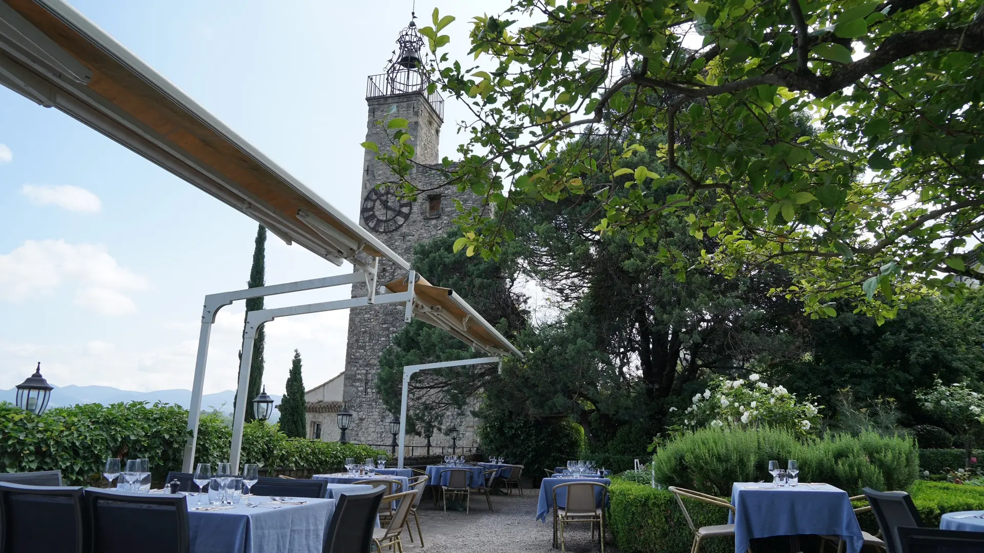 Von April bis Oktober bietet Ihnen Coline Christiansen, Chefin des Restaurants la Fontaine, eine qualitativ hochwertige Küche, die auf subtile Weise die Düfte der Provence mit denen ihrer Reisen verbindet. An sonnigen Tagen werden die Mahlzeiten auf den Terrassen des Belfrieds serviert, von denen aus Sie ein herrliches Panorama genießen können.