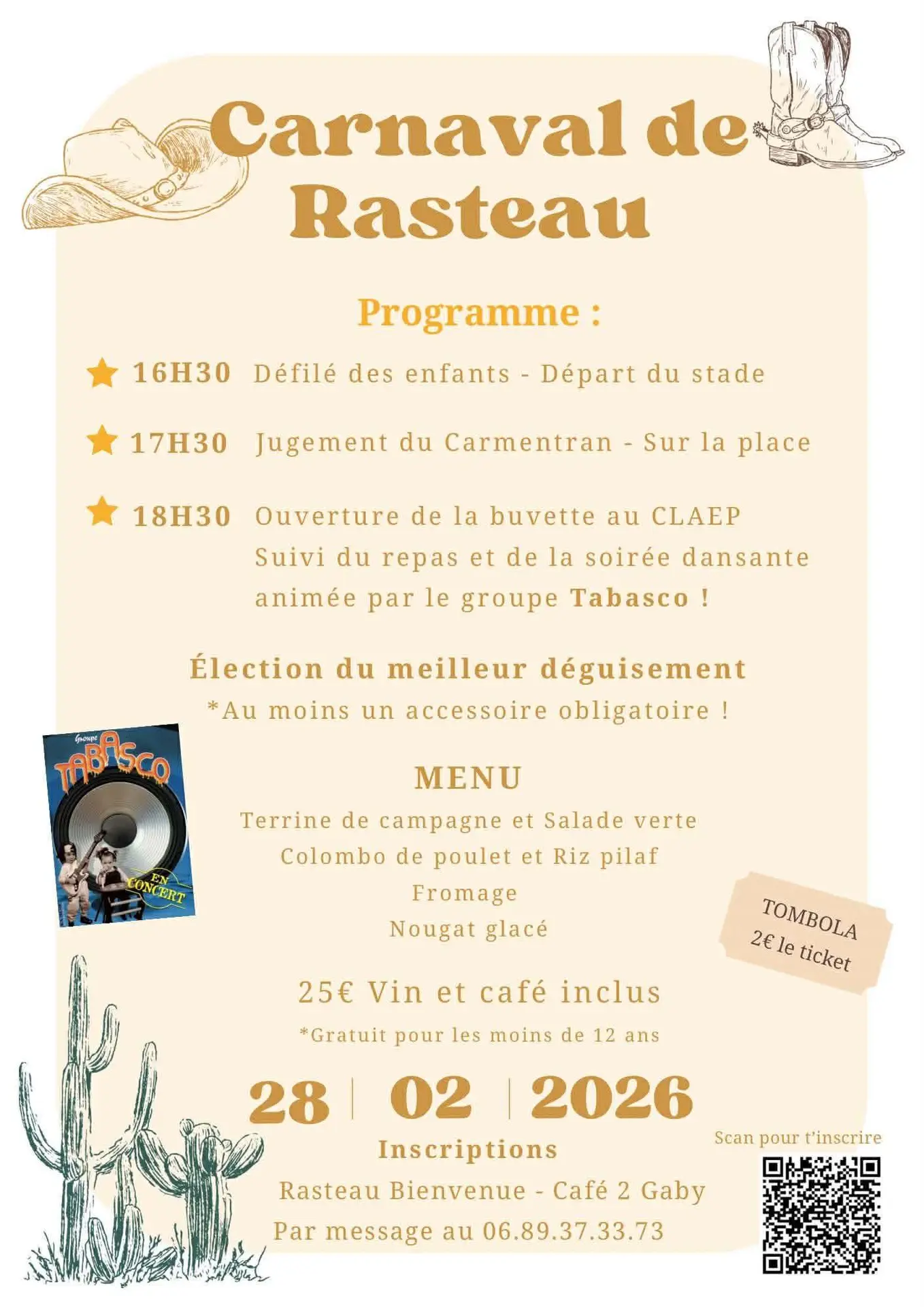 Das Festkomitee und die ALCPE von Rasteau laden Sie zum Karneval auf den Dorfplatz ein, wo der Carmentran gerichtet wird und ein Karnevalsabend im Claep stattfindet.