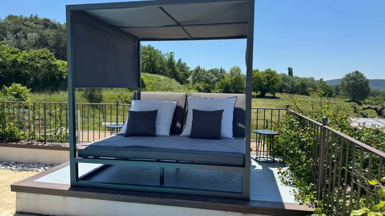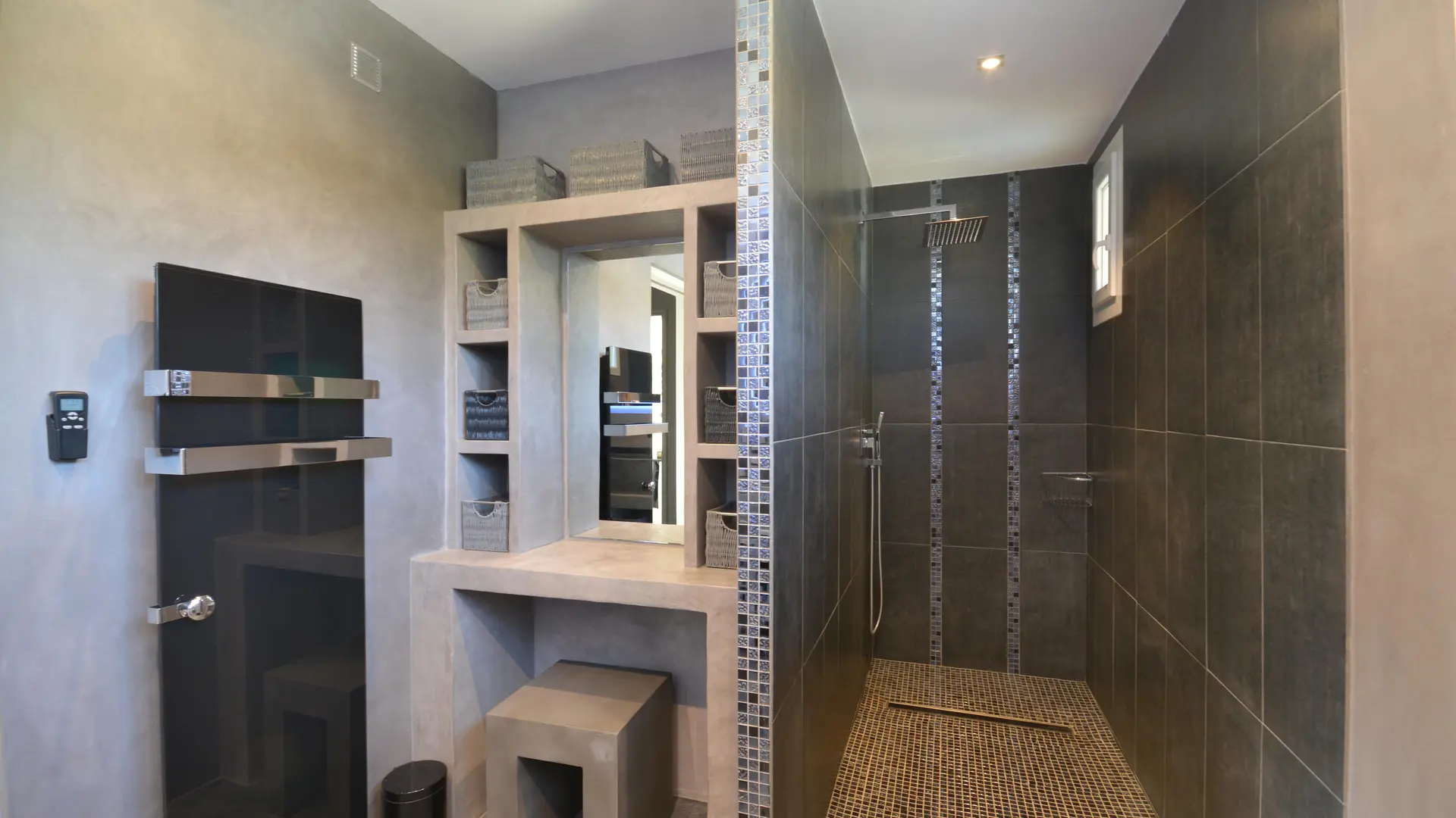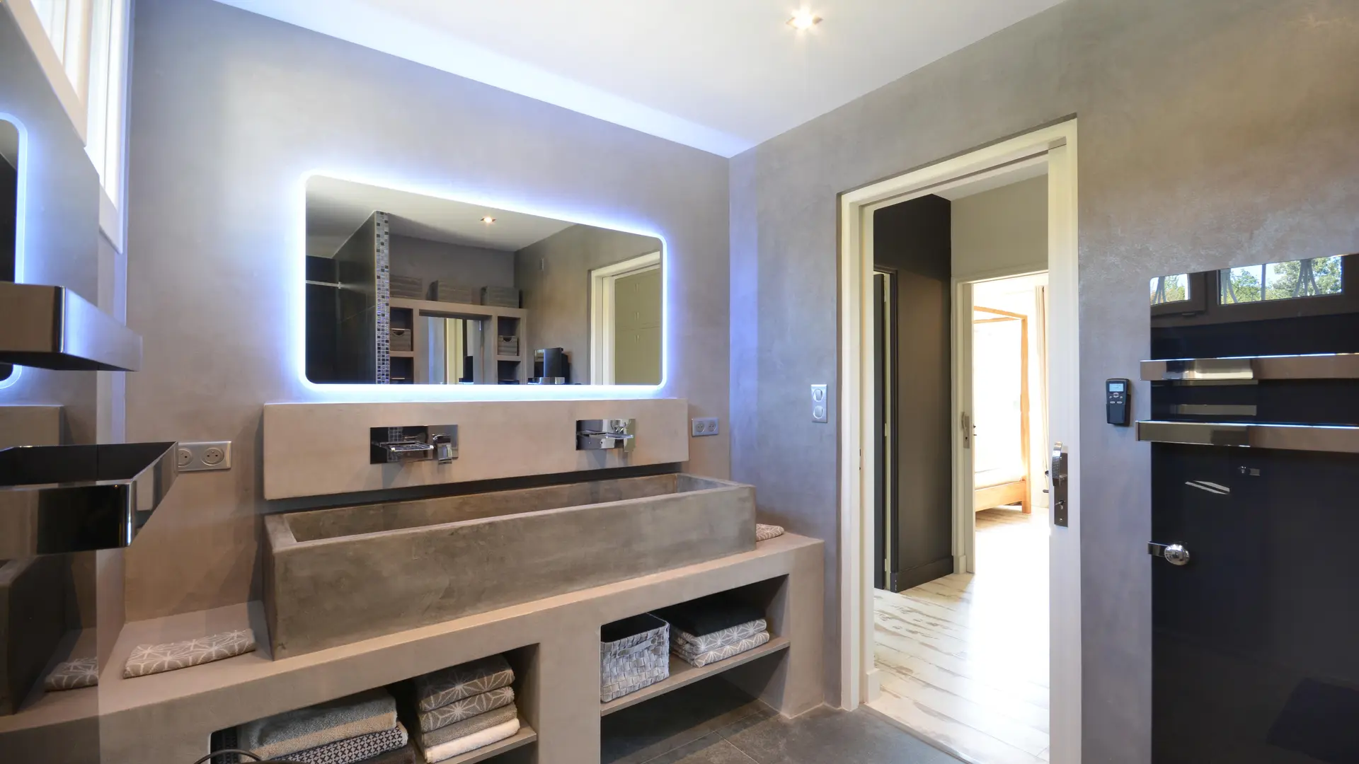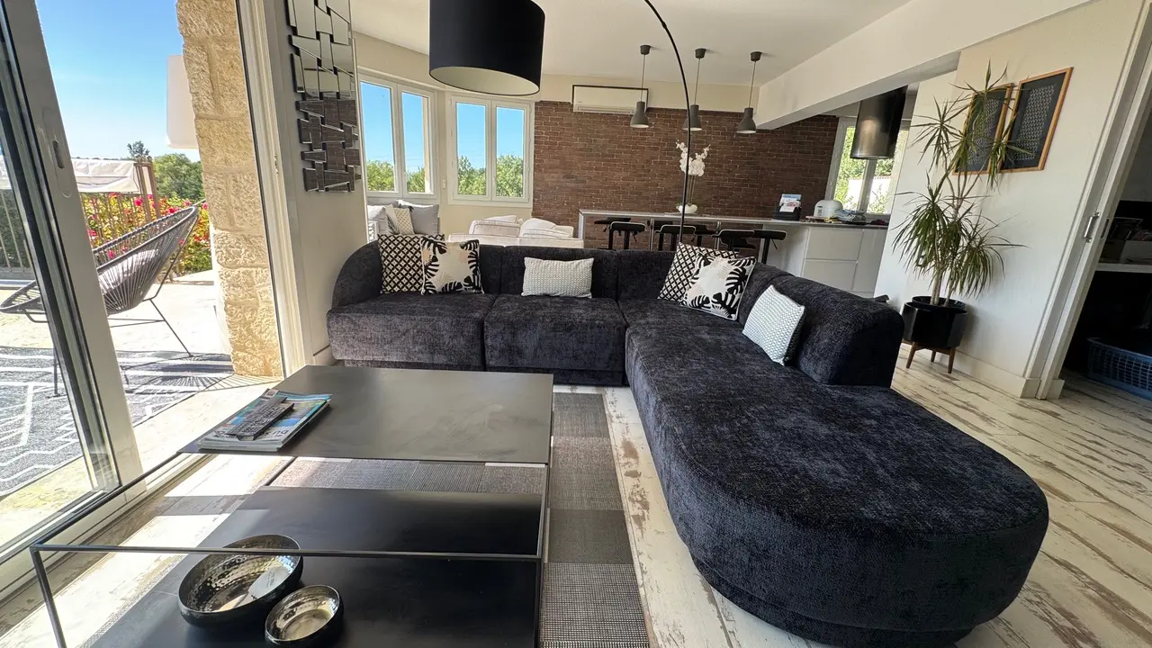 Eine große Terrasse von 150 m² im Süden führt zu einem sehr angenehmen Poolbereich mit einer Sommerküche, einer Plancha und Tischtennis.