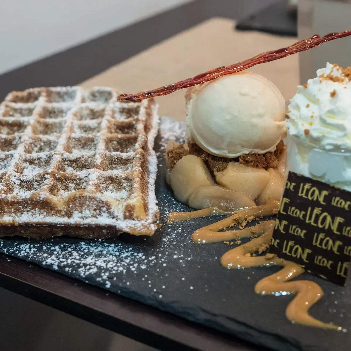 Seit ihrer Einrichtung im Jahr 2016 ist Léone zur ersten Adresse für alle geworden, die im Sommer gerne Eis essen und im Winter Waffeln schlemmen.