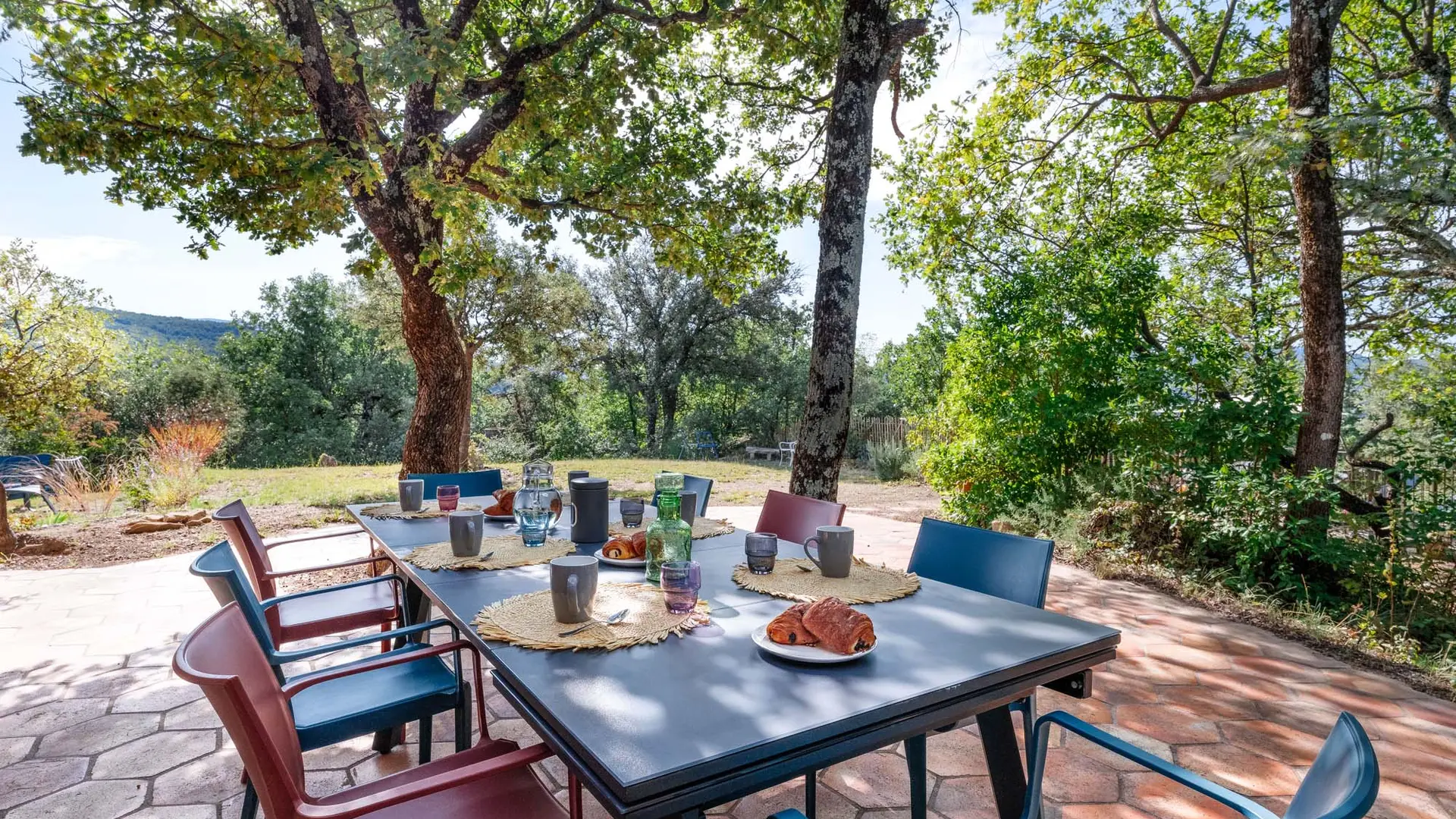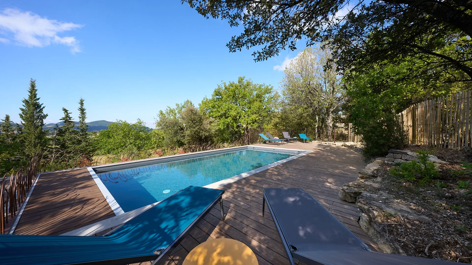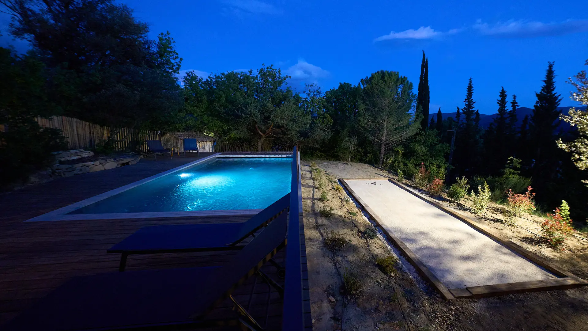 Die Villa Yvisa verfügt über einen eingezäunten Pool sowie einen Bouleplatz. Im Außenbereich wurden mehrere "Terrassenecken" für Ihren Komfort eingerichtet: ein großer Gartentisch im Schatten der hundertjährigen Bäume, eine Essecke vor der Küche mit einem atemberaubenden Blick auf die Baronnies sowie Gartenmöbel für entspannte Momente.