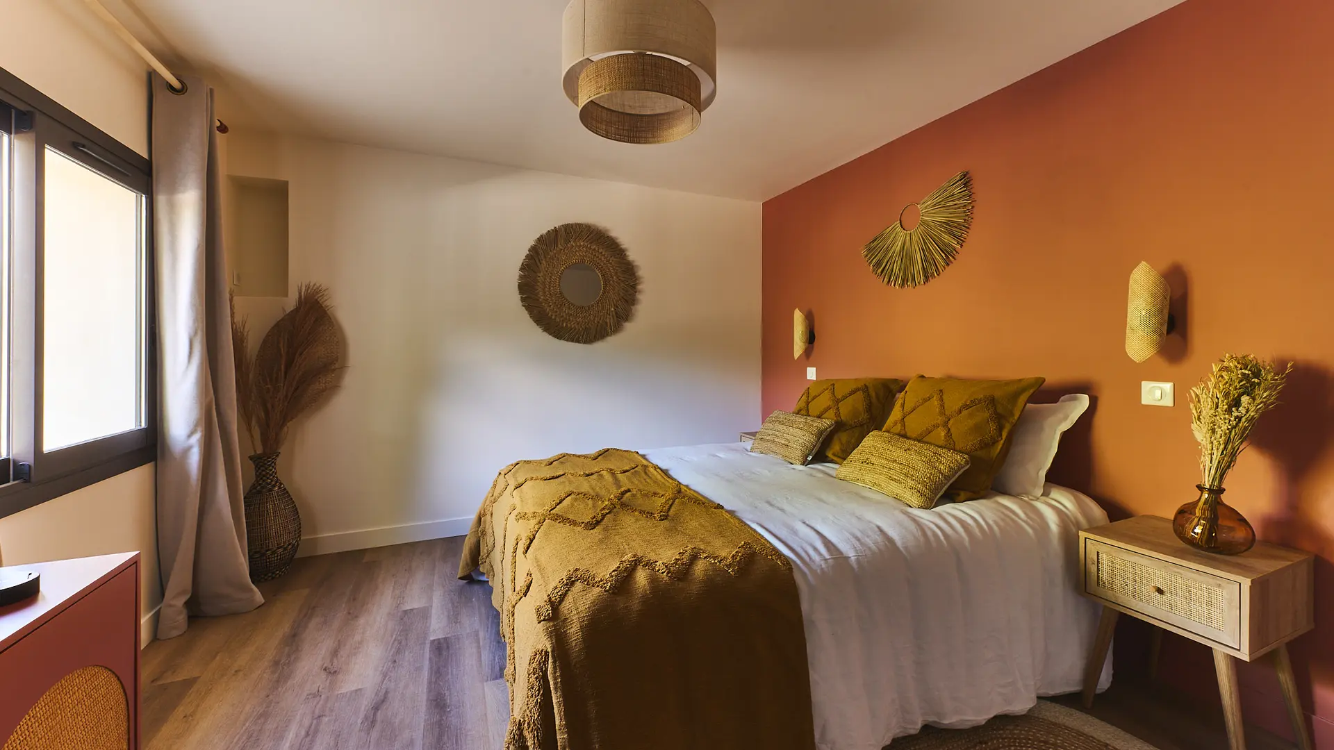 Die Villa ist klimatisiert und verfügt über 5 helle Schlafzimmer mit jeweils einem eigenen Badezimmer. Sie besteht aus zwei Ebenen, die jeweils mit dem Außenbereich verbunden sind: